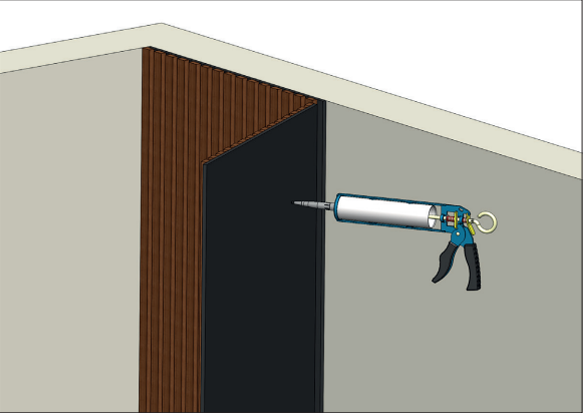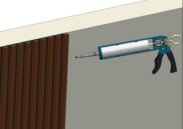 Hvis du velger liming, får du en helt skjult montering av akustikkpanelet. Vårt hurtigherdende lim gjør det enkelt å lime panelene på plass. Begynn alltid med å lime panelet.