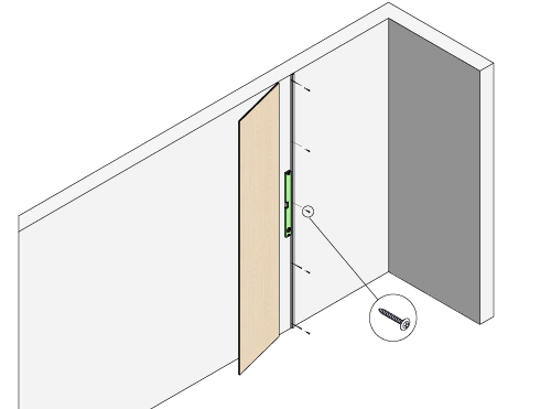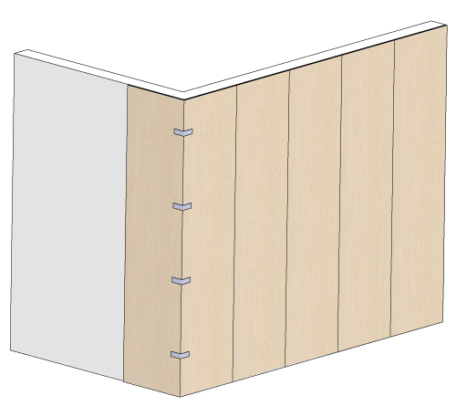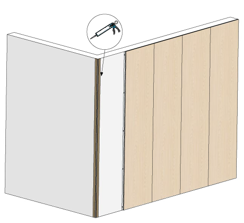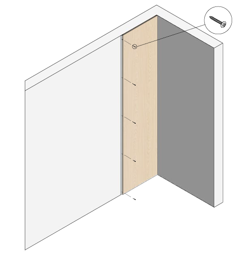 3. Skru eller lim fast vår DISTANCE-list før du monterer veggpanelene våre, for å sikre riktig avstand mellom veggpanelet og veggen.