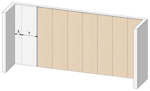 MERK! Ikke glem å skru eller lime fast DISTANCE-listen bak det siste veggpanelet på forhånd for å sikre riktig avstand mellom veggpanelet og veggen.