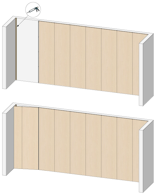 9. Lim baksiden av veggpanelene med vårt monteringslim.
