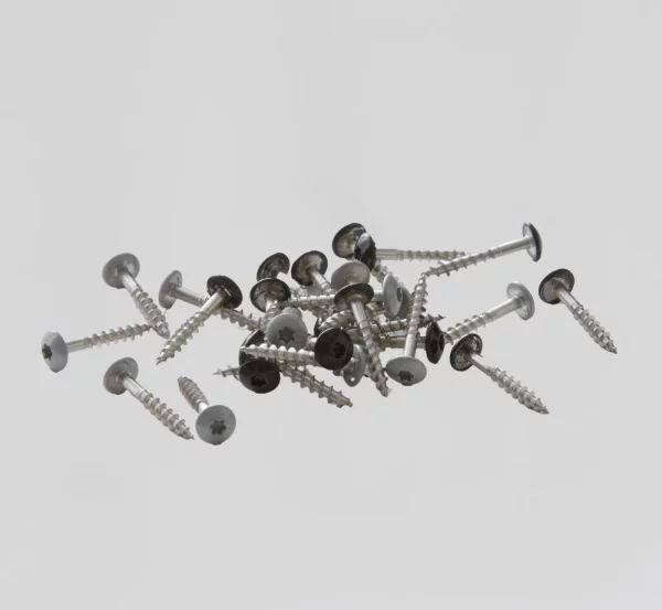 15 monteringsskruer i hver pakke (for ett panel). Størrelse 4,2 x 28 mm. Bruk disse skruene for rask montering av lamellpanelene på veggen/i taket.